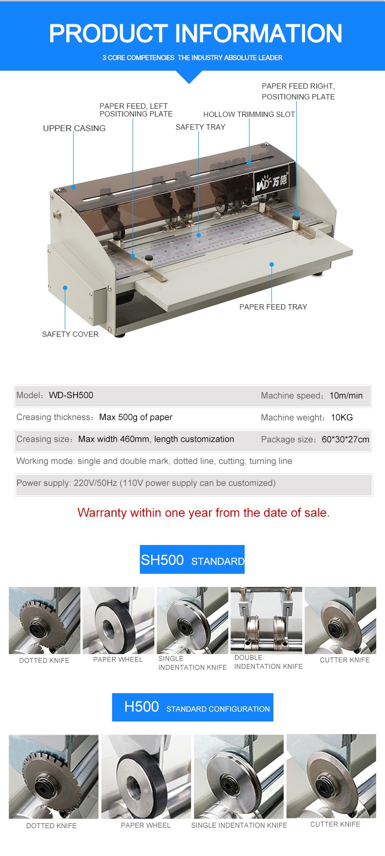 | Standard | 2 set single creasing, 2set double creasing,1 set perforating, 1 set cutting ,3set paper guide |