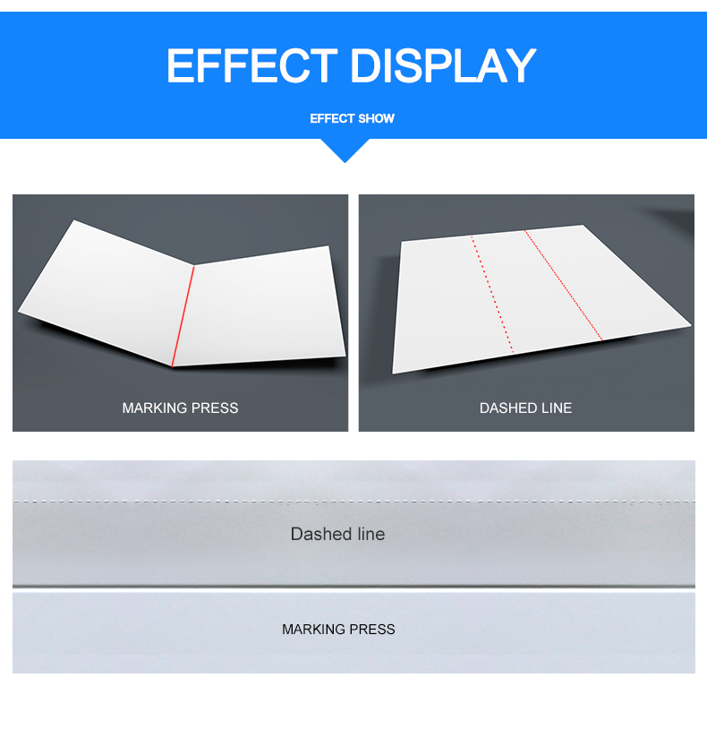 Featuring a standard two-set single creasing, two-set double creasing, one-set perforating, and one-set cutting, this machine is designed for versatility and precision. Equipped with a three-set paper guide, it ensures that your paper is always in the right place at the right time.
